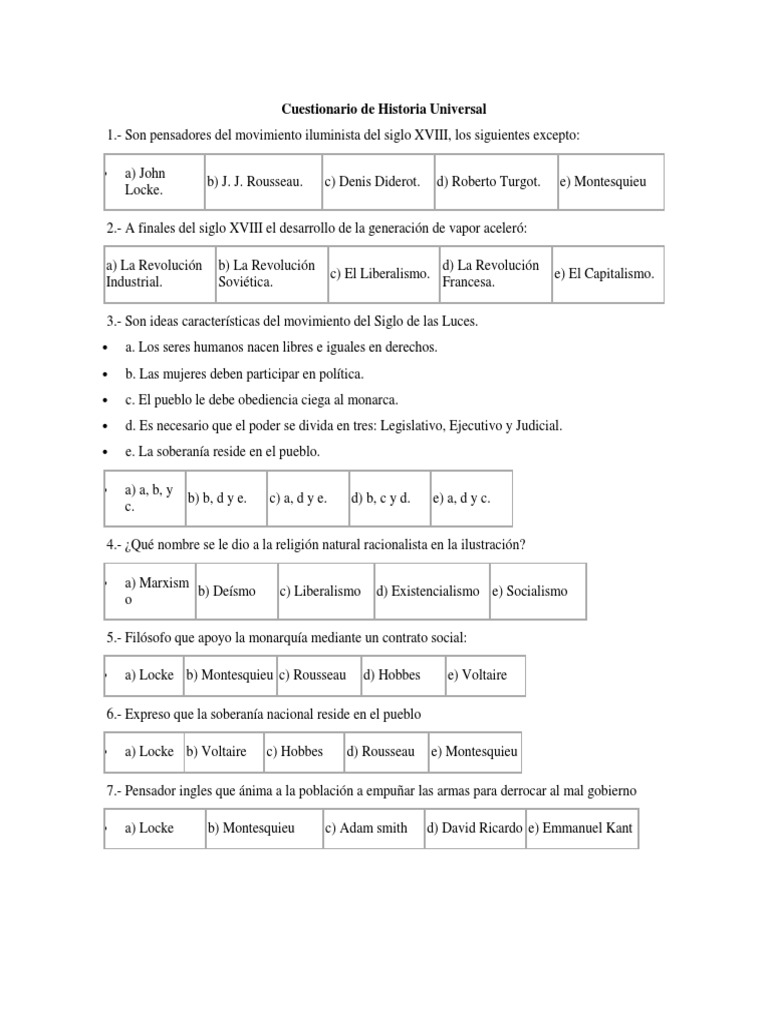 Cuestionario de Historia Universal 1.