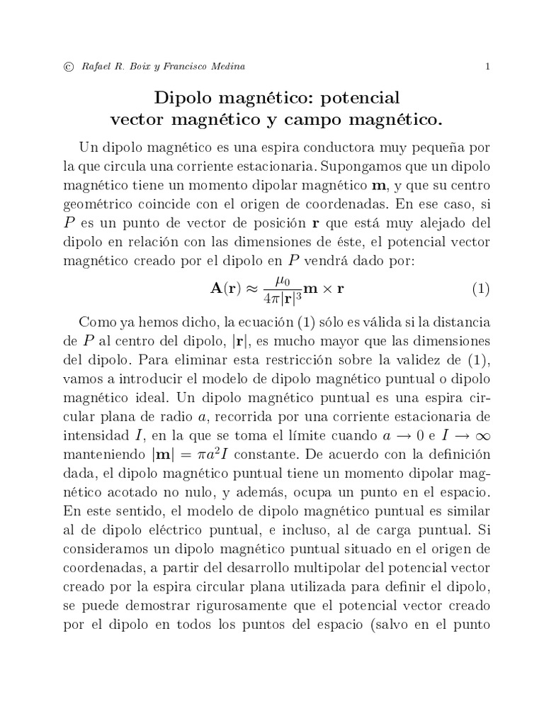 Un dipolo magntico es una espira conductora muy pequea por