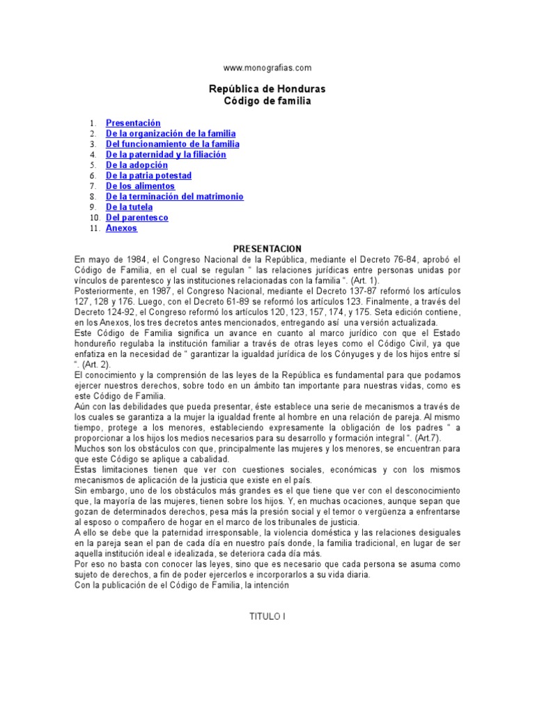 hondureño regulaba la institución familiar a través de otras leyes como el Código Civil, ya que