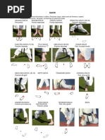 I. KIHON WAZA: TECNICAS FUNDAMENTALES 1. Trabajo con compaero Serie 7: Atemi (paradas y defensas. Tai Sabaki exteriores) 1. Tsuki derecho Tai Sabaki lateral (control con la mono derecha) Tsuki izq. 2. Tsuki derecho Tai Sabaki adelante (control con la mano der.) + Empi Uchi izq. 3. Mae Geri derecho (o Tsuki) Tai-Sabaki circular (control con el brazo izquierdo Empi Uchi derecho (en la espalda). 4. Mae Geri derecha Tai-Sabaki otras (control con los das brazos) + Mae Geri izquierdo o derecho Serie 8: Atemi (paradas y defensas. Tai-Sabaki interiores) 1. tsuki derecho Tai-Sabaki lateral (control con la mano izquierda) = Mawashi Geri izquierdo. 2. tsuki derecho Tai-Sabaki adelante (control con la mano derecha) = Empi Uchi derecho. 3. Mae-Geri (a tsuki) tai-sabaki circular (control con el brazo derecho) = Empi Uchi izquierdo. 4. Mae-Geri tai-sabaki otras derecho Mae Geri derecha o izquierdo Serie 9: (forma exterior) Luxaciones (sobre ataque Nukite) 1. robuse (lateral). 2. Kote Gaeshi (adelante). 3. Yuki chigae (circular) 4. Tenbin Gatame (llave de braza sobre el hombro) (atrs). Serie 10: (forma interior) Luxaciones (sobre ataque de intento de agarre a las solapas) 1. Kote gata me (llave de mueca). 2. Ude gata me (brazo extendido). Serie 11: (forma exterior) Proyecciones (sobre ataque Tsuki) 1. Tai-Sabaki lateral o soto gari 2. Tai-Sabaki adelante mukae-daoshi. 3. Tai-Sabaki circular hachi Mawashi. 4. Ataque Mae-Geri y tsuki tai-sabaki atrs ko soto gari Serie 12: (forma interior> proyecciones (sobre ataque Shuto) 1. Ippon-seoi-nage. 2. O-goshi. 3. Tai-otoshi o kubi nage. 4. Shiho-nage Serie 13 (estrangulaciones) 1. Tsuki Jodan hadakajime. 2. Tsuki Jodan sode-guruma-jime. 3. Shomen Uchi kata-ha-Jime. 4. Shomen Uchi envolver el brazo, llave al codo flexionado, estrangulacin con la mano derecha (Eri Jime)