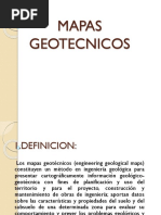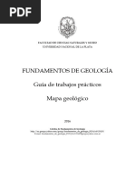 Mapas geolgicos: Un mapa geolgico sirve para mostrar la ubicacin y orientacin de las principales unidades geolgicas y sus caractersticas, esta informacin ayuda a interpretar la historia geolgica de un rea, y tiene mltiples aplicaciones prcticas, entre las que se destacan el uso por parte de las compaas mineras y de petrleo, empresas de ingeniera, agencias ambientales, empresas consultoras, entre otras. Como normalmente no es posible ver todos los detalles de las unidades rocosas, ya que estn cubiertas por suelo, agua, vegetacin, etc., para elaborar un mapa geolgico se recopila informacin de los afloramientos, en la zona donde las rocas aparecen expuestas en la superficie. La informacin relevante que se obtiene de los afloramientos, como por ejemplo el tipo de roca, la orientacin de las capas o la presencia de estructuras como fallas o fracturas, se plotea sobre un mapa topogrfico del rea. Este es un mapa geolgico, a veces apoyado por otras fuentes de Informacin como sondajes. El mapa y sus elementos: El comienzo de un mapeo geolgico se realiza a partir de un estudio profundo de los antecedentes de la regin donde se encuentra la zona que se quiere mapear. Estas etapas de investigacin e informacin pueden realizarse a partir de mapas topograficos. Mapas geologicos antiguos, mapas geolgicos de gran escala, en revistas geolgicas, fotos areas, entre otros. Estructura general de un mapa geolgico: Un mapa geolgico considera un conjunto de elementos para la correcta entrega de informacin, la que puede ser complementada por un informe y descripciones mas detalladas del sector. Referidas al tipo de fsiles, columnas estratigrficas, descripciones de los estratos, formaciones y unidades.