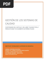 innovacin ( V ) ( F ) 53. Una de las aspiraciones del CTC es que las empresas restablezcan el orgullo por el trabajo, para ello es necesario eliminar el temor y una nueva direccin ( V ) ( F ) 54. El CTC inicia con capacitacin y finaliza con capacitacin ( V ) ( F ) 55. Si se trata de reducir la productividad lo que debe reducirse es el porcentaje de productos defectuosos y deficientes mediante cambios en el sistema ( V ) ( F ) 56. En las reas de contacto con el cliente se debe entender la importancia de proporcionarle un buen producto con rapidez en la entrega y con la actitud correcta. ( V ) ( F ) 57. CTC significa sistemas de calidad total o control total de calidad ( V ) ( F ) 58. La calidad es ms que todo satisfaccin del cliente ( V ) ( F ) 59. Joseph Jurn dice que Calidad es que un producto sea adecuado para su uso. ( V ) ( F ) 60. Juran es abierto adversario de extender el sistema contable para cuantificar los costos de calidad. (V)(F)