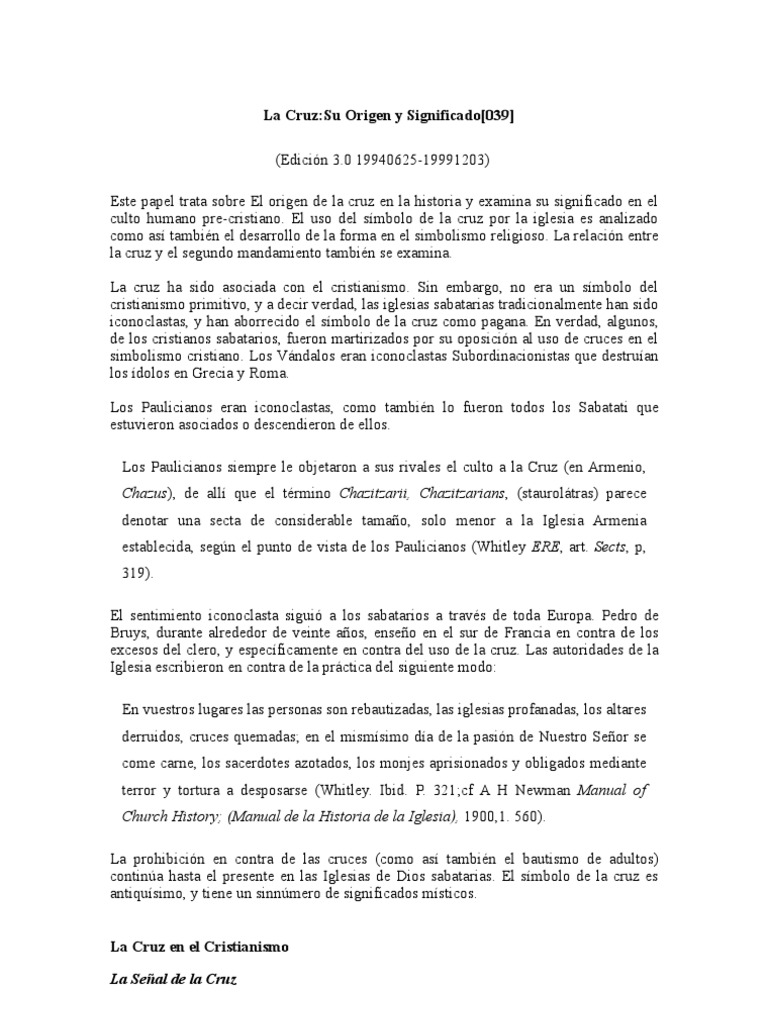 Este papel trata sobre El origen de la cruz en la historia y examina su significado en el
