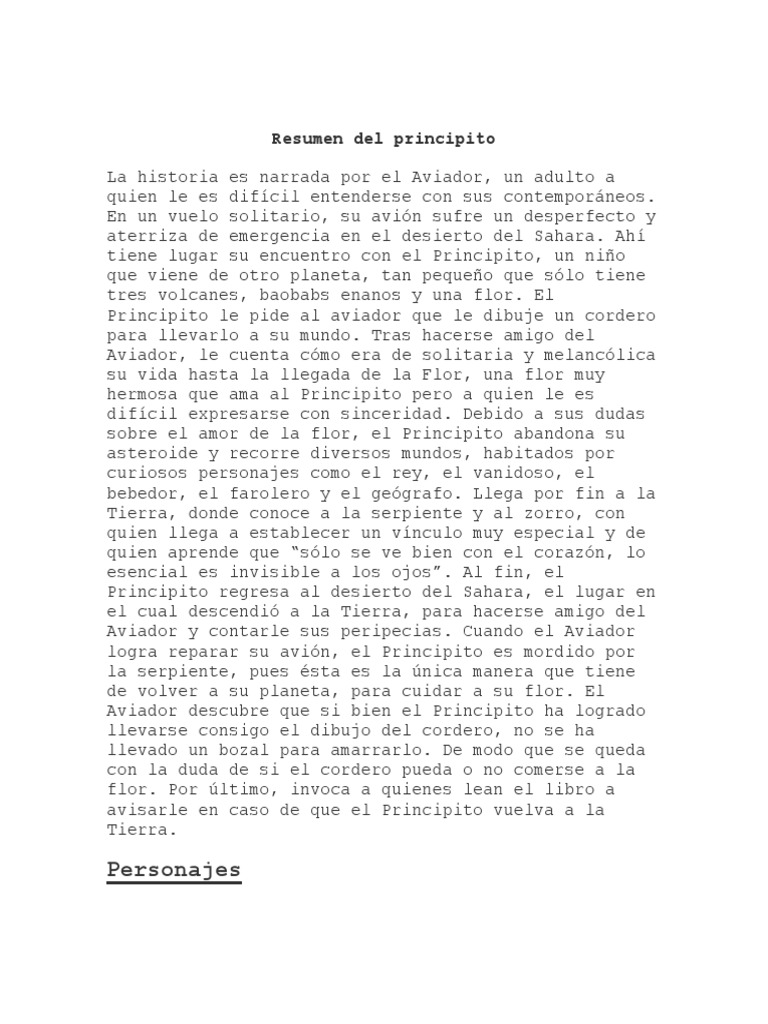 Resumen del principito La historia es narrada por el Aviador, un adulto a quien le es difcil entenderse con sus contemporneos.
