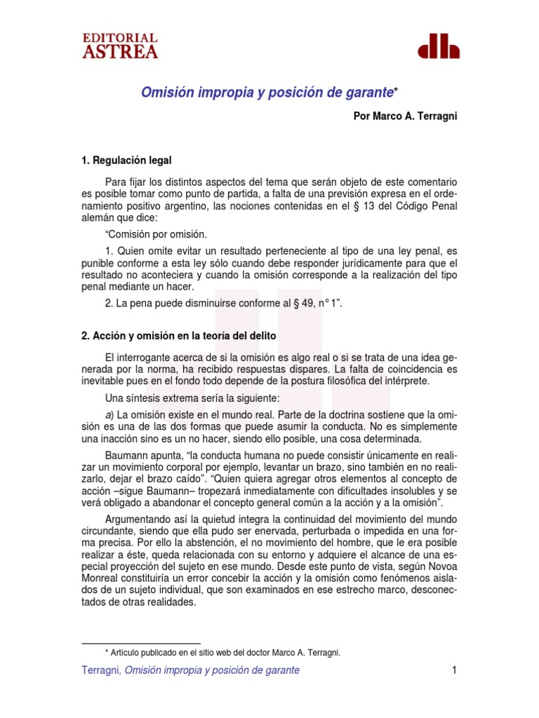 Terragni, Omisin impropia y posicin de garante
