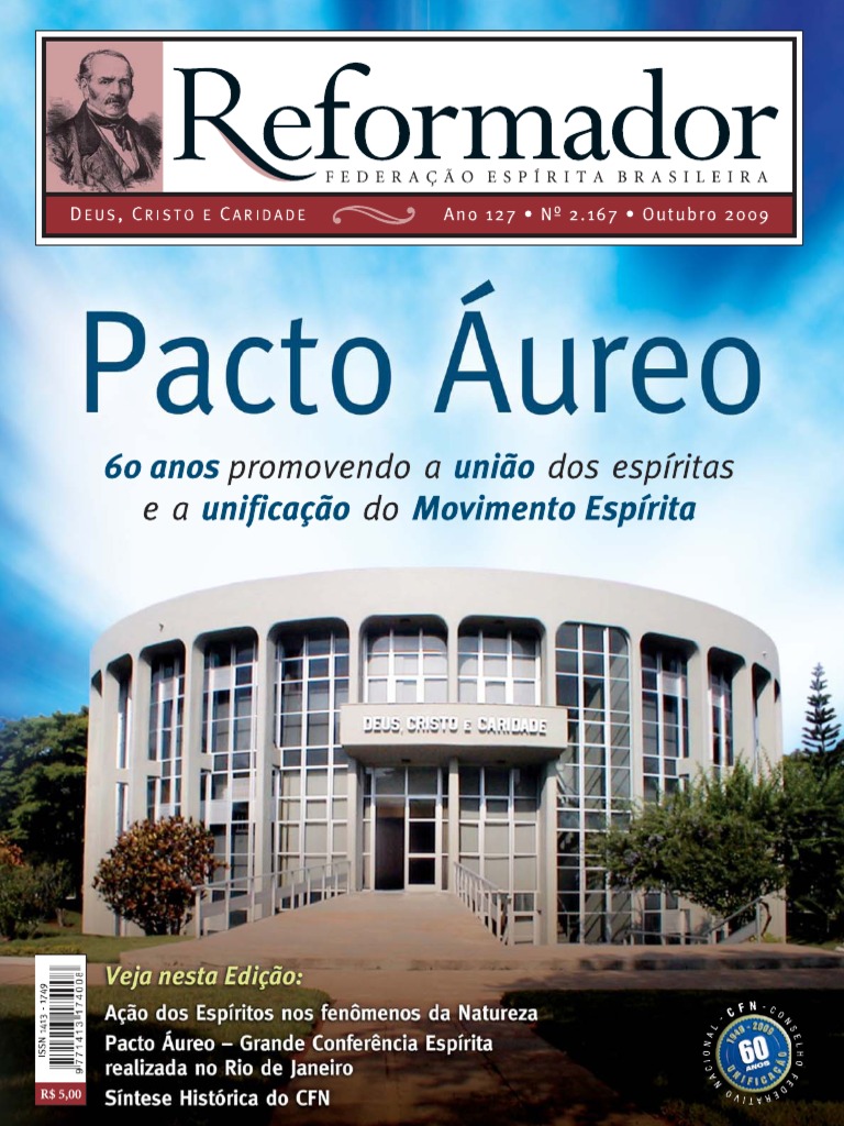 5 60 anos do Pacto ureo (Capa) 9 O Consolador Prometido Juvanir Borges de Souza 16 Diretrizes de ao e atividades do Conselho Federativo Nacional Antonio Cesar Perri de Carvalho 18 Ao dos Espritos nos fenmenos da Natureza