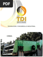 Una criba vibratoria (Figura 1) es un equipo que sirve para separar materiales en tamaos diferentes y para limpiar materiales. Se utiliza en las industrias de materiales lapdeos (piedras, mrmoles, granitos), del cemento, de la minera, de la construccin y de gestin de residuos.