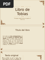 Este libro corresponde a un original semtico que se ha perdido, an cuando en Qumrn se descubrieron a mediados del siglo XX los restos de cuatro manuscritos arameos y uno hebreo sobre Tobas. El autor escribi el libro para los judos que luchaban con el tema de la adaptacin a las costumbres griegas del mundo que les rodeaba. Es una historia fascinante acerca del exilio de un judo, fiel cumplidor de la ley, cuyo nombre era Tobit, quien adoraba a Dios y se preocupaba por el prjimo incluso cuando su vida estaba en riesgo. Agobiado por las pruebas y el peso de su ceguera, Tobit ruega a Dios por su muerte y mientras enva a su hijo Tobas a la regin de la Media a recaudar una gran suma de dinero. En Media, Sara, una joven mujer, al mismo tiempo reza tambin por su muerte porque haba estado casada siete veces y en cada oportunidad el demonio mataba a su marido en la noche de la boda. Dios envi al arcngel Rafael para que acompaara a Tobas, hijo de Tobit, en su viaje hacia Media. Tobas lleg con xito a su destino, donde conoce a Sara y se casa con ella sin ocurrirle ninguna desgracia. Consigue el dinero que deba recoger y, a su regreso, Tobit sana de su ceguera al aplicarse el remedio que Rafael le haba dado a Tobas para tal fin. La finalidad de esta historia es la de mostrar que los buenos judos deban ser fieles a las leyes y tradiciones de sus antepasados. Por esto motivo Tobas ejemplifica las virtudes de reverencia a Dios, devocin a la adoracin en el Templo, amor a la familia, caridad, oracin, limosna y ayuno. Las instrucciones dadas por Tobas y por Rafael estn verdaderamente dirigidas a todos aquellos que leen el libro. Al establecer un marco histrico, los personajes adquieren un carisma e inters especiales. Incluso hoy en da podemos enriquecernos con los hermosos ideales ejemplificados en sus actores y en sus dilogos en este libro. Las instrucciones que Tobit le da a su hijo Tobas para prepararle para el viaje a Media, pueden considerarse tambin como indicaciones que preparan al lector para el viaje de su vida.
