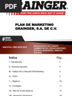 UNIVERSIDAD INTERCONTINENTAL. CIENCIAS ADMINISTRATIVAS, COMUNICACIN Y HUMANIDADES. LICENCIATURA EN MERCADOTECNIA MERCADOTECNIA ESTRATGICA. W. W. Grainger, Inc., no ignora oportunidades internacionales. De hecho, la empresa atiende clientes en ms de 125 pases, incluyendo alrededor de 170 sucursales en Mxico y Canad. Y el mayorista empieza a incursionar en China, donde el potencial de mercado para productos MRO es de unos 30,000 millones de dlares anuales. Qu debera hacer Grainger en el rea de distribucin a fin de proteger su posicin como un destacado mayorista de servicios completos? consideramos que debe abarcar mayor mercado internacional y poner mas puntos de ventas en otros paises. Con el fin que tanto clientes como empresa ahorren dinero modificar el medio de comunicacin, en vez de telfono usar medios de comunicacin online, creando as una interaccin ms personal entre consumidorempresa.