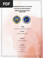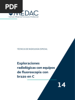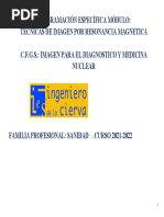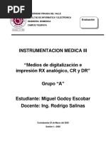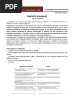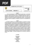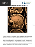 concentracin de hidrogeniones (ncleos de hidrgeno) y de los tiempos de relajacin. El contraste de una imagen est entonces determinado por el contraste intrnseco de los rganos y tejidos que se van a estudiar, pero tambin hay factores tcnicos que lo hacen variar y deben ajustarse a la zona anatmica que se examina. Adems, existen distintos tipos de pelculas radiogrficas que ofrecen distintos grados de contraste (rango dinmico y latitud de la exposicin). C) Resolucin temporal Es la capacidad para adquirir una imagen ptima en el menor tiempo posible. Es inversamente proporcional al tiempo de adquisicin de la imagen. Al contrario de la resolucin espacial o la de contraste, no puede valorarse directamente sobre la imagen. Esto es debido a que an en baja resolucin temporal (largo tiempo de adquisicin) puede aparecer borrosidad cintica, producida por el movimiento interno de las partes del organismo que se estn examinando. La resolucin temporal es an ms importante en los estudios de imgenes dinmicos o funcionales, en los que se trata de valorar el movimiento de un rgano, vaso o rea lesionada. En estos casos, la menor rapidez de la adquisicin permite obtener informacin funcional que no siempre se manifiesta en las imgenes estticas. D) Relacin Seal/Ruido Es la relacin entre la parte til de la seal y el nivel de ruido aadido a la misma. Cuanto mayor sea la relacin seal/ruido, ms calidad tendr la imagen y ms fcil ser interpretarla. Las imgenes mdicas contienen informacin til para el diagnstico e informacin ajena al estudio diagnstico. Cuando se interpretan stas imgenes, se debe separar la informacin til (seal) de la informacin ajena del entorno (ruido). La aparicin de valores que no se corresponden con los del objeto en estudio se deben a fluctuaciones en la fuente de energa, en el receptor o en los circuitos que se conocen como ruido de fondo. Este ruido de fondo puede ser trmico (resistivo), tipo shot (barreras de potencial) o interferencial (induccin de campos electromagnticos). Se mide en dB (decibeles) y su expresin es: - log (S/R) = dB E) Artefactos Es cualquier estructura que aparezca en una imagen mdica y que no tenga una correspondencia real en el organismo estudiado. Las causas de los artefactos son mltiples y distintas para cada una de las tcnicas de imagen. Algunos artefactos pueden y deben evitarse (por ejemplo, limpiando las hojas de refuerzo en Rx convencional, retirando los objetos metlicos que lleva el paciente en TC o RM). Otros artefactos siempre estarn presentes y slo se pueden reducir (por ejemplo, la magnificacin de estructuras en Rx convencional, artefactos de flujo en RM) y en determinados casos la presencia de artefactos puede ser til para el diagnstico radiolgico (por ejemplo, sombra acstica en litiasis en estudios ecogrficos, desplazamiento qumico en lesiones con grasa en RM). Relacin entre los distintos parmetros Lo ideal es disponer de la mayor resolucin espacial, temporal y de contraste en una imagen con una buena relacin seal/ruido y sin artefactos. Sin embargo, esto es difcil porque los parmetros estn relacionados entre s, de forma tal que al mejorar la calidad de uno, se suele reducir en otro. En general, si aumenta la dosis de radiacin administrada al paciente suelen mejorar los parmetros de calidad de la imagen, pero esto, adems de que puede entraar dificultades tcnicas, se contrapone con el principio de lograr el diagnstico preciso con la menor dosis de radiacin (Criterio ALARA: As Low As Reasonably Achievable).