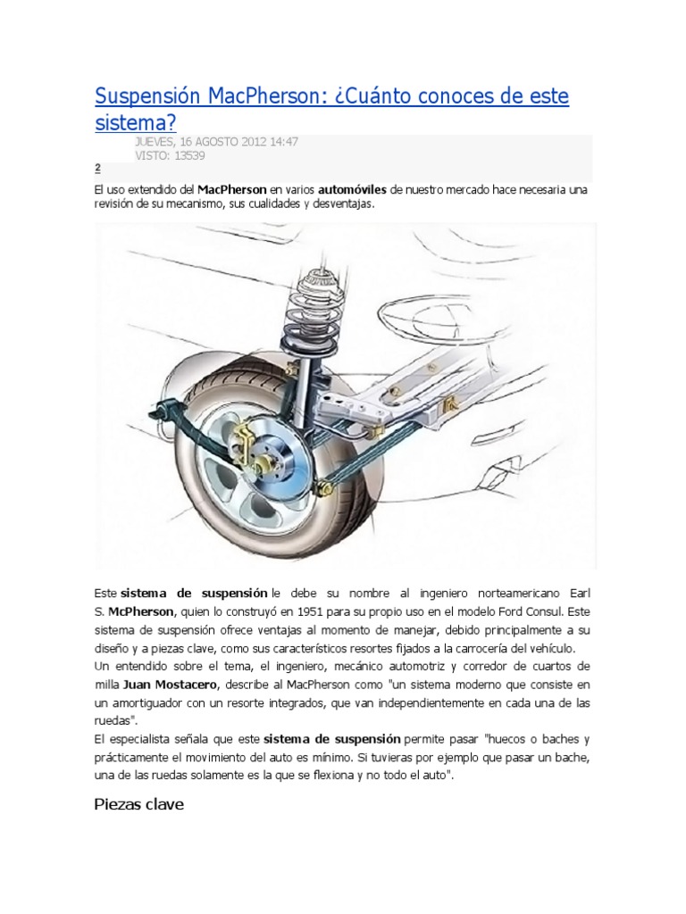 El uso extendido del MacPherson en varios automviles de nuestro mercado hace necesaria una revisin de su mecanismo, sus cualidades y desventajas.