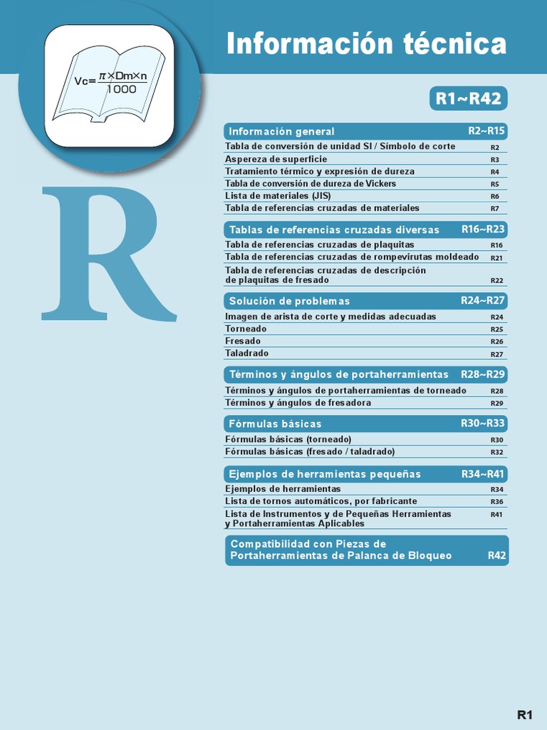 Tabla de referencias cruzadas de plaquitas Tabla de referencias cruzadas de rompevirutas moldeado Tabla de referencias cruzadas de descripcin de plaquitas de fresado
