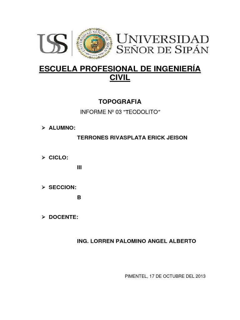 INFORME N 03 TEODOLITO ALUMNO: TERRONES RIVASPLATA ERICK JEISON