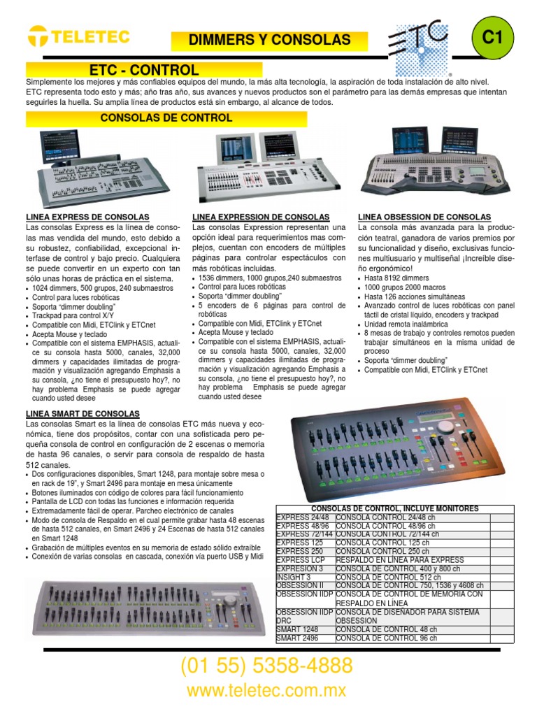 LINEA EXPRESS DE CONSOLAS Las consolas Express es la lnea de consolas mas vendida del mundo, esto debido a su robustez, confiabilidad, excepcional interfase de control y bajo precio. Cualquiera se puede convertir en un experto con tan slo unas horas de prctica en el sistema.