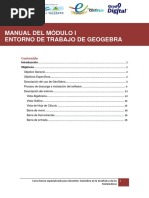 Con esta gua sobre la interfaz de GeoGebra se pretende familiarizar al usuario con el entorno visual propio de GeoGebra. Esta aplicacin gratuita destaca, entre otras cosas, por su entorno intuitivo y la extrema facilidad de aprendizaje de uso. Sin embargo, siempre es interesante conocer algunas acciones o posibilidades alternativas de interaccin que pueden ahorrarnos tiempo y molestias. Por ello, recomendamos su lectura (o al menos un vistazo) incluso a aquellos usuarios que ya posean alguna experiencia en el manejo de GeoGebra.