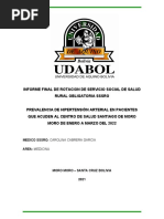 insalubridad objetiva presentada por el deficiente saneamiento bsico, la misma que condiciona la elevada prevalencia de enfermedades diarreicas que pueden degenerar en infecciones de alto riesgo y en el dficit del desarrollo de los nios. La deshidratacin como consecuencia de estas enfermedades ocasiona emergencias permanentes en los establecimientos de salud, ms aun si se tratan de lactantes y nios con bajo peso o desnutridos. Por su condicin rural marginal de la jurisdiccin del [Link]. Illimo - Lambayeque donde algunos sectores no cuentan con el servicio de agua potable durante todo el da por consiguiente no hay un buen manejo y almacn de agua. Por otra parte no se practican normas de disposicin de excretas y basura, creando espacios seguros de contaminacin. Es as, este estudio se orientar a determinar: Cules son los conocimientos, actitudes y prcticas de las madres de menores de 5 aos con casos de EDA de la Jurisdicion del [Link]. de Illimo que acuden a este Centro de salud desde Setimbre Dicembre 2013