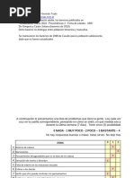 Actitudes: esta rea consta de 9 tems, utilizando la escala de Likert, el puntaje de calificacin para valorar el tipo de actitud se estableci categorizando de la siguiente manera, asumiendo el valor: CASO POSITIVO: (5 Pts.) TA: Totalmente desacuerdo (4 Pts.) DA: Desacuerdo (3 Pts.) I : Indeciso (2 Pts.) ED: En desacuerdo (1 Pts.) TD: Totalmente en desacuerdo Aceptacin (TA, DA), Indiferencia ( I ), Rechazo (ED,TD). CASO NEGATIVO: (1 Pts.) TA: Totalmente desacuerdo (2 Pts.) DA: Desacuerdo (3 Pts.) I: Indeciso (4 Pts.) ED: En desacuerdo (5 Pts.) TD: Totalmente en desacuerdo