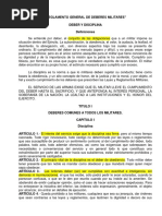 8 ARTCULO 34. Todo militar en servicio debe dar noticia de su domicilio particular al Jefe de quien dependa, y en su defecto a la autoridad militar de la plaza en que resida. ARTCULO 35. El militar tendr profundo respeto a la justicia, consideracin y deferencia a los inferiores a quienes nunca har observaciones, ni correcciones en presencia de inferiores, ni de personas extraas y guardar atencin a los civiles. ARTCULO 36. Queda estrictamente prohibido a los militares, cualquiera que sea la situacin en que encuentren en el Ejrcito, hacer presin moral o material con los individuos o ELEMENTOS a su disposicin para inclinar la opinin pblica en determinado sentido y burlar de ese modo la efectividad del voto y la libertad del sufragio. Los miembros del Ejrcito tienen todas las obligaciones, prerrogativas y derechos que las leyes prescriben para los ciudadanos; de manera que el ejercicio de estos ltimos no tendr ms limitaciones que las mismas leyes sealen o cuando se afecte la subordinacin y disciplina o tienda a contrariar las rdenes del servicio, sea en tiempo de paz o en campaa. ARTCULO 37. No se permite a los militares aceptar obsequios de sus inferiores. Se evitar por consiguiente, que promuevan o colecten suscripciones con ese objeto, sin que por esto se eviten las atenciones sociales y de urbanidad que mutuamente se merecen. ARTCULO 38. Cuando en el momento de recibir rdenes para ejecutar una operacin, no se encuentre a la cabeza de la fuerza el superior que la deba mandar, el que le siga en categora tomar desde luego las medidas necesarias para proceder a cumplirlas. ARTCULO 39. Cuando a algn militar se le marque el ALTO! QUIEN VIVE! por un centinela, se detendr y contestar: MXICO!, el nmero de su Corporacin o dependencia en que sirva; en cualquier otro caso contestar su grado y tendr obligacin de identificarse ampliamente, para cuyo efecto los Generales, Jefes y Oficiales portarn constantemente su tarjeta de identificacin o cartera de identidad expedida por la Secretara de Guerra y los individuos de tropa usarn, en igual forma, otra expedida por la Comandancia de su corporacin o dependencia.