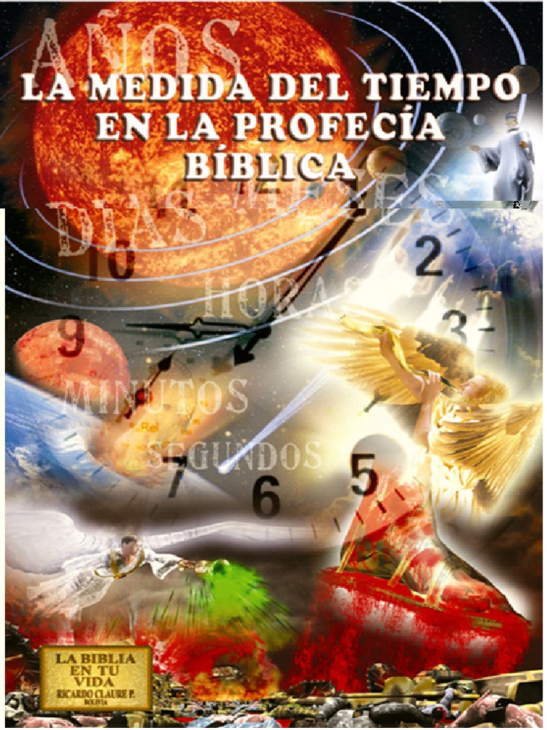LA MEDIDA DEL TIEMPO EN LA PROFECA BBLICA es un librito escrito por el Pr. Ricardo Claure P., que se constituye en un breve compendio de un libro mayor ms ampuloso y completo respecto de La Historia del Tiempo en la Biblia, de prxima publicacin. Mediante un clculo de 933 mil 654.76 das netos hacia el pasado en la lnea del tiempo, partiendo desde el instante que termin la ceremonia de fundacin del Estado de Israel, es decir, el 14 de mayo de 1948 a hrs. 15:32 IST (Israel Standard Time), este librito le podr guiar a conocer una grande cantidad de fechas histricas y bblicas relacionadas con Israel, el Imperio Neo-babilonio y el Imperio Medo-persa sin tener necesidad de recurrir, como lo hacen los historiadores seculares, a la arqueologa y sus tabletas de arcilla con escritura cuneiforme; sino simplemente, recurriendo a los datos astronmicos divinos registrados en la Biblia, a travs de la profeca, genealogas y cronologas de reyes; aplicados a elementales principios de Matemticas, Astronoma y Relatividad de Einstein. S! As se obtienen medidas del tiempo exactas! Asimismo, mediante un clculo de 954 mil 801 das, 29 minutos, 33 segundos netos hacia el futuro en la lnea del tiempo, partiendo desde el inicio del reinado de Joacim rey de Jud, le permite conocer no solamente la fecha exacta del inicio del cautiverio de Ezequiel y Joaqun rey de Jud, sino tambin la fecha en que Ezequiel recibi la profeca contra Gog (Ezequiel 38 y 39), para as determinar los muchos das (Ezequiel 38:8a) que Dios en Cristo Jess por el espritu de la profeca orden calcular a nuestro Pastor Ricardo Claure, cuando estando enfermo en Cambridgetierra de Magog- profiri los 52 versos profticos a los odos de Gog todava prisionero en el Abismo, en fecha lunes, 2 de abril de 2007 desde hrs. 4:30 AM a 4:45 AM-Greenwich Mean Time - GMT. Un libro que le revelar que: En la lnea del tiempo hacia el futuro, partiendo del 14 de mayo de 1948 a hrs. 15:32 IST y contabilizando 70 aos bblicos, usted podr encontrar la fecha en que empezar los ltimos 7 aos bblicos 2520 das previos a la Segunda