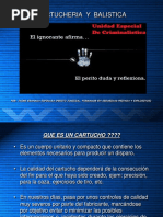 golpea contra el botador, ste le imprime en el lugar de impacto marcas caractersticas de alto valor identificatorio. La recmara, los labios del cargador, etc.: Las piezas mencionadas y toda otra que tome contacto con el cartucho durante el proceso de carga, disparo y descarga del arma, puede dejar estampadas en vainas y proyectiles marcas, huellas o indicios que permitan su identificacin, relacionndolas con el arma utilizada.