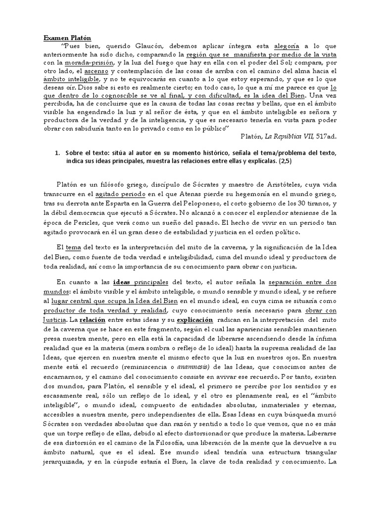 Examen Platn Pues bien, querido Glaucn, debemos aplicar ntegra esta alegora a lo que anteriormente ha sido dicho,