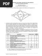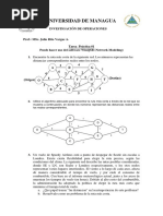 PREGUNTA 1 Una o-ra de construccin se $a dividido en . actividades /ue de-en ser realizadas respetando relaciones de precedencia entre ellas* 0e $a decidido utilizar una red dirigida para representar estas relaciones( en la cual cada arco est1 asociado a una actividad( 2 cada nodo representa el trmino o inicio de las actividades /ue llegan o salen de l( respectivamente* 3or e4emplo( en la red representada en la +igura( las actividades 5#('6 2 5#(!6 de-en ser realizadas al inicio del pro2ecto7 2 el nodo 5 representa el trmino de las actividades 5!(56 2 5'(56( 2 el comienzo de las actividades 55("6 2 55(&6* 8dem1s se sa-en las duraciones de cada actividad( lo /ue se muestra tam-in en la +igura siguiente*