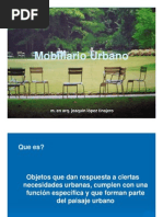El mobiliario urbano corresponde a la dotacin en la va pblica, de servicios o elementos que satisfagan necesidades del usuario como vegetacin y ornato, descanso, comunicacin, comercio, higiene, servicios e informacin, con su respectivo equipo o mobiliario y con una localizacin lgica para que cumpla con una ptima funcionalidad. Se considera mobiliario urbano de telfonos, alumbrado, se alamiento, sem!foros, ornato y forestacin, depsito de basura, proteccin para peatones, cubiertas para paradas de autobuses, proteccin para peatones, bancas, "ioscos, locales para venta de peridicos, etc. El #obiliario $rbano comprende todos aquellos elementos complementarios que se dividen por su dimensin y funcin en varios tipos ya sean% fi&os, permanentes, mviles o temporales. 'lgunos requieren de un soporte para la integracin con otros elementos y otros requieren fi&arse solos.
