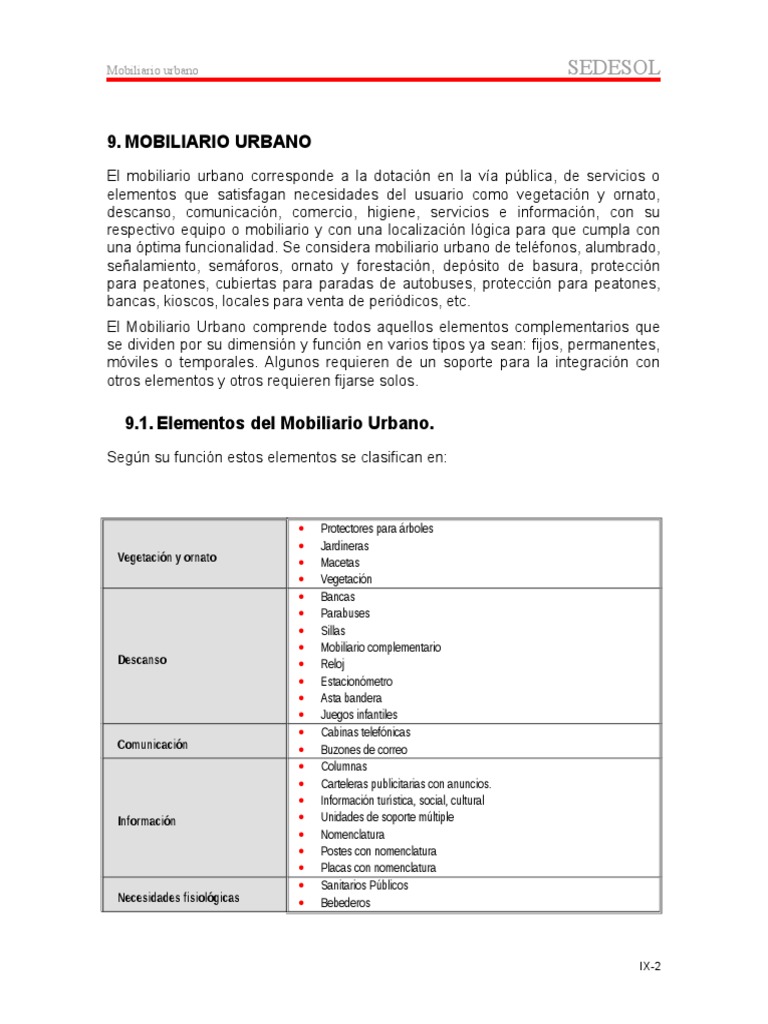 Protectores para rboles Jardineras Macetas Vegetacin Bancas Parabuses Sillas Mobiliario complementario Reloj Estacionmetro Asta bandera Juegos infantiles Cabinas telefnicas Bu ones de correo Columnas Carteleras publicitarias con anuncios! "nformacin tur#stica$ social$ cultural %nidades de soporte m<iple 'omenclatura Postes con nomenclatura Placas con nomenclatura Sanitarios P&blicos Bebederos