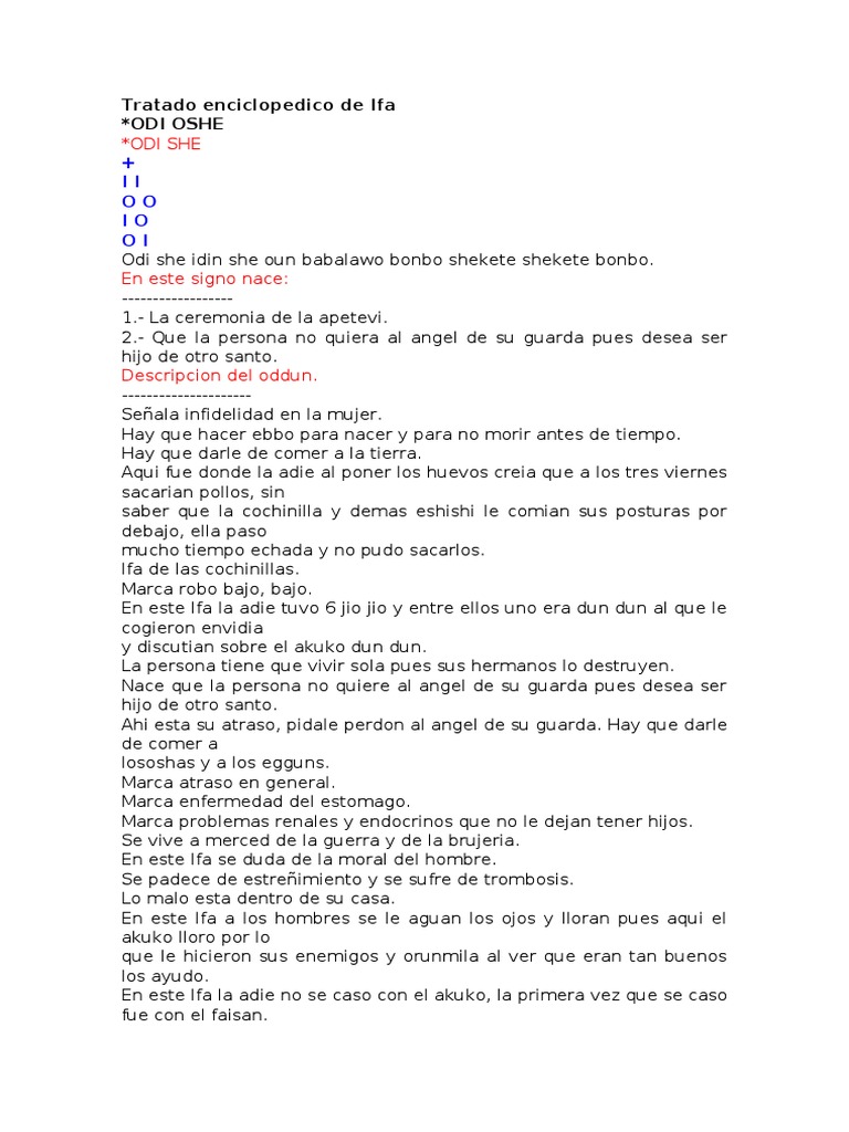 Tratado enciclopedico de Ifa *ODI OSHE *ODI SHE + II OO IO OI Odi she idin she oun babalawo bonbo shekete