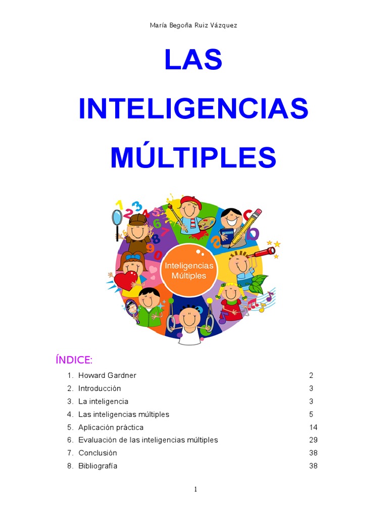 1. Howard Gardner 2. Introduccin 3. La inteligencia 4. Las inteligencias mltiples 5. Aplicacin prctica 6. Evaluacin de las inteligencias mltiples 7. Conclusin 8. Bibliografa 1 2 3 3 5 14 29 38 38
