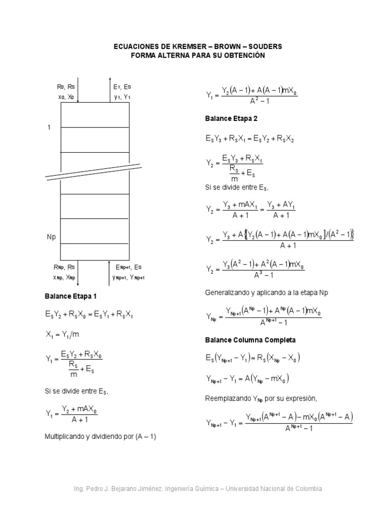 ecuaciones de Kremser es equivalente a la