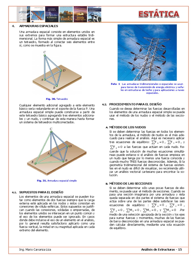 Foto 1 Las armaduras tridimensionales o espaciales se usan para torres de transmisin de energa elctrica y seales en estructuras de techo y para aplicaciones a naves espaciales. Fig. 30. Tetraedro