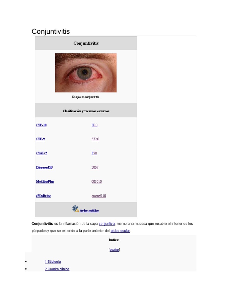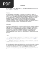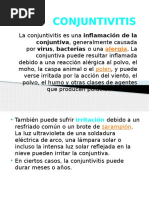 Conjuntivitis es la inflamacin de la capa conjuntiva, membrana mucosa que recubre el interior de los prpados y que se extiende a la parte anterior del globo ocular.