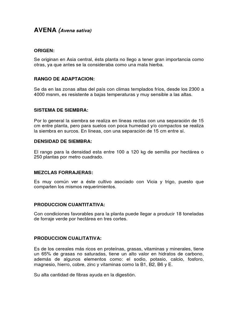 MEZCLAS FORRAJERAS: Est en funcin del suelo donde se siembre, si ste tiene buenas condiciones se puede sembrar con avena, trigo, vicia y otras leguminosas.