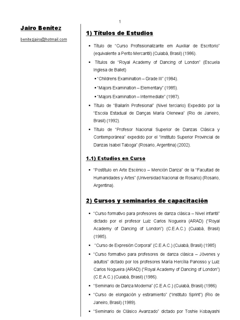 (con especificidad en “Danza Clásica”) (2006 y continúa).