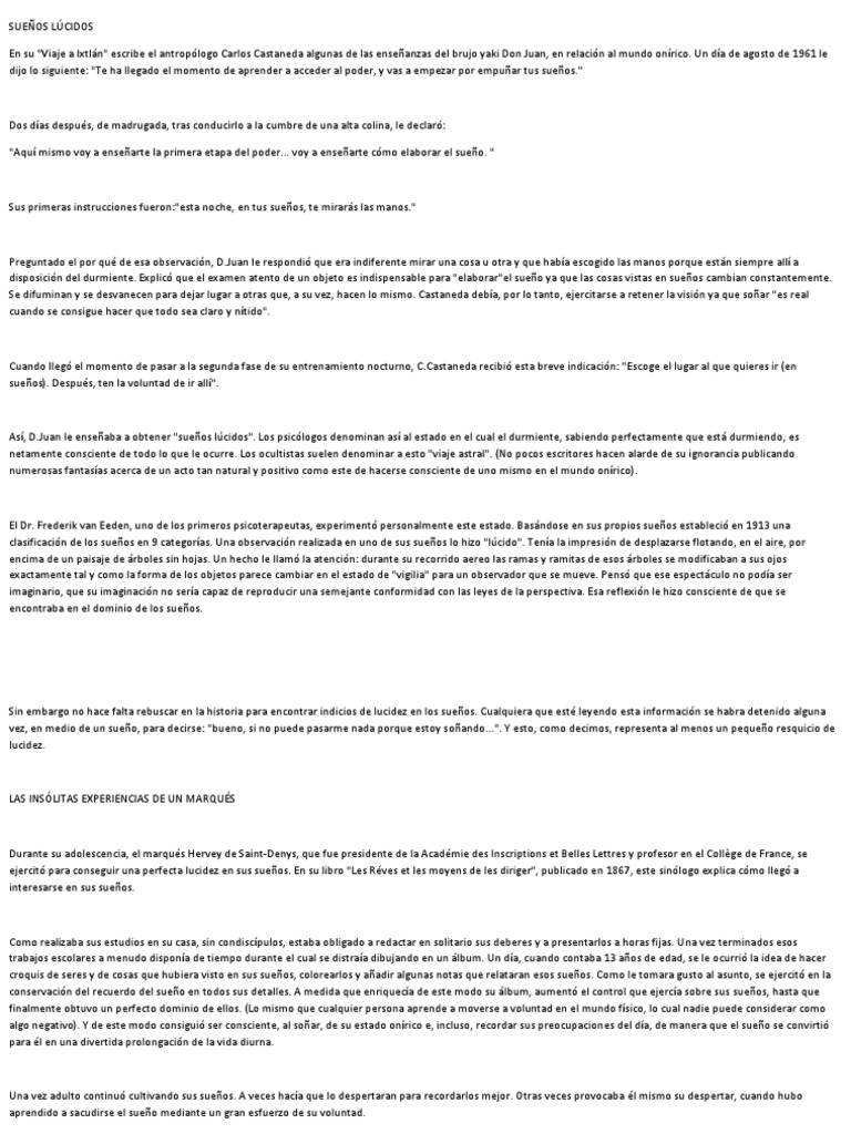 SUEOS LCIDOS En su "Viaje a Ixtln" escribe el antroplogo Carlos Castaneda algunas de las enseanzas del brujo yaki Don