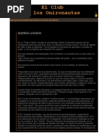 Fueron verdaderas "elaboraciones del sueo", segn la expresin del brujo [Link], a lo que procedi el honorable acadmico. Consigui no slo rememorar con exactitud sus experiencias onricas sino tambin desplazarse en sueos muy lejos del lugar donde reposaba su cuerpo fsico. Veamos el relato de uno de sus viajes nocturnos: "Esta noche he soado que mi alma haba salido de mi cuerpo y que recorra inmensos espacios con la rapidez del pensamiento. Me transport primero a una poblacin salvaje. Asist a un combate feroz sin correr riesgo alguno pues yo era, a la vez, invisible e invulnerable".