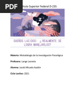 As, [Link] le enseaba a obtener "sueos lcidos". Los psiclogos denominan as al estado en el cual el durmiente, sabiendo perfectamente que est durmiendo, es netamente consciente de todo lo que le ocurre. Los ocultistas suelen denominar a esto "viaje astral". (No pocos escritores hacen alarde de su ignorancia publicando numerosas fantasas acerca de un acto tan natural y positivo como este de hacerse consciente de uno mismo en el mundo onrico).