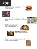 Con-con, los ingredientes son harina, papas, cebolla, condimento, carne con hueso, chicharrn. &a preparacin, #re%r con unos chicharrones una cebolla grande picada, los huesos con carne de !acuno y condimento a gusto, poner agua a todo el preparado en cantidad su#iciente. 'gregarle las papas cortadas en cubos grandes, en una #uente aparte preparar con harina, sal y agua una masa consistente, armar rodillos de masa, y cortarla en #orma de "oquis, her!ir hasta su coccin.