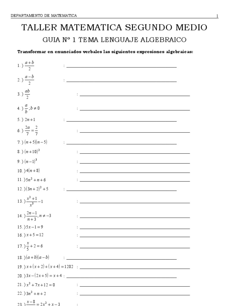 GUIA Nº 1 TEMA LENGUAJE ALGEBRAICO