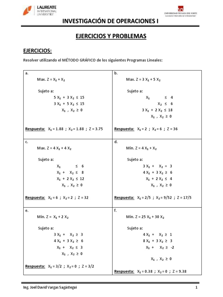 Formular el modelo de programacin lineal y encontrar la solucin ptima, utilizando el mtodo grfico y el mtodo simplex.
