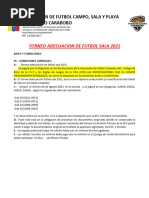 FAIR PLAY Los participantes se comprometen a respetar las diez reglas de FIFA: 1. 2. 3. 4. 5. 6. 7. Jugar para ganar. Jugar de buena manera (actuar con caballerosidad). Conocer las reglas de juego. Respeto a los contrarios, compaeros, rbitros y espectadores. Aceptar la derrota con dignidad. Promover los intereses del futbol. Rechazar corrupcin, drogas, racismo, violencia y otros peligros que pudieran daar a nuestro deporte. 8. Ayudar a otros a resistir a la corrupcin. 9. Denunciar a quien atenen en el descrdito de nuestro deporte. 10. Honrar a quienes defiendan la buena reputacin del futbol.