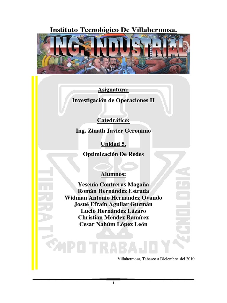 Catedrtico: Ing. Zinath Javier Gernimo Unidad 5. Optimizacin De Redes
