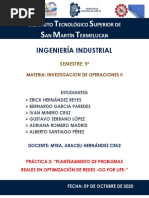 Una empresa ha dejado de fabricar ciertos productos, liberando de esta forma las cargas de produccin que tenan sus equipos en los departamentos de maquinado. Ahora se tienen horas mquina que se pueden utilizar en los productos denominados 1,2,3 de la siguiente manera: Mquina Horas por pieza de producto Horas Maq. Disponibles 1 2 3 por semana Fresadora 9 3 5 500 Torno 5 4 - 350 Rectificadora 3 - 2 150 Utilidad $/ pieza 50 20 25 Recomendacin del Mnimo Mnimo Mnimo Depto. Vtas a Prod. 30 15 20 Formular un modelo de Programacin Lineal para este problema