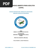 La prctica docente contiene mltiples relaciones de ah su complejidad y la dificultad para entraar su anlisis. Para facilitar su estudio, dichas relaciones se han organizado en seis dimensiones (personal, institucional, interpersonal, social, didctica, valoral) que servirn de base para el anlisis que emprenderemos en la prctica docente y cada una de estas dimensiones destaca un conjunto particular de relaciones del trabajo docente que conforman el contexto de la prctica docente. Gua de observacin De estas dimensiones slo tomaremos dos que son la Dimensin didctica y la Dimensin institucional ya que observaremos como los maestros hacen su papel de agente en el proceso de la enseanza y facilitan el acceso al conocimiento, as como las relaciones y la socializacin que se establece dentro del contexto escolar.