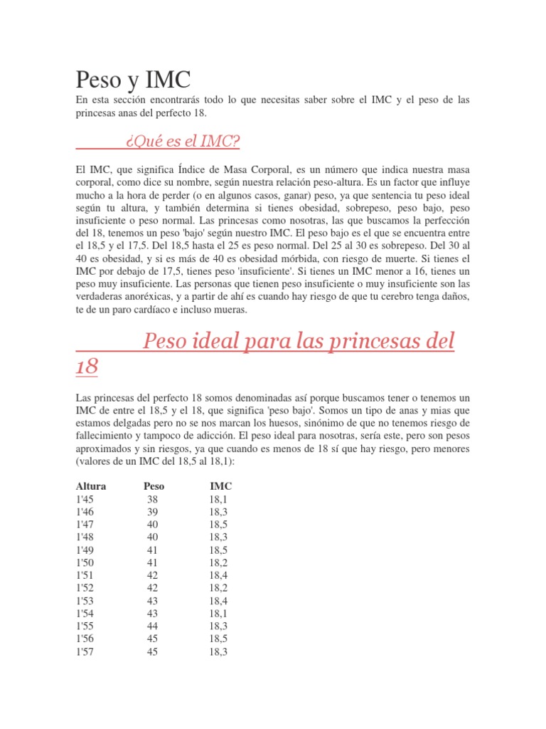 En esta seccin encontrars todo lo que necesitas saber sobre el IMC y el peso de las princesas anas del perfecto 18.