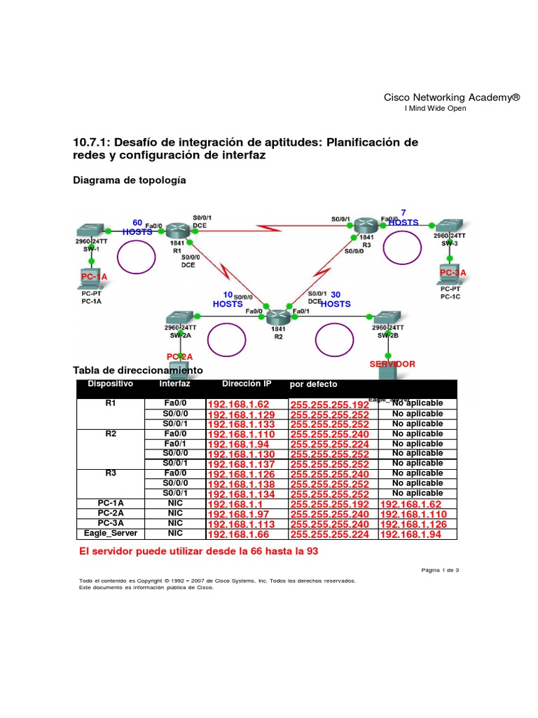 10.7.1: Desafo de integracin de aptitudes: Planificacin de redes y configuracin de interfaz