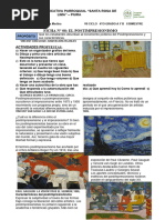 embargo, el significado que adquiere la pintura libre del objeto en sus cuadros hace de l un punto de unin entre el siglo XIX y el XX. En el umbral del siglo XX tambin nos encontramos con pintores como Henri Rousseau, James Ensor y Edvard Munch que, cada uno a su estilo, crearon mundos pictricos individuales. Vincent Van Gogh Vincent Van Gogh fue un solitario autodidacta y uno de los grandes pioneros de la era moderna. Absorbi el impresionismo, lo supero a su manera y se convirti en el precursor del expresionismo. Su cuantiosa y expresiva obra, pero tambin su infeliz vida, caracterizada por el fracaso (en toda su vida no vendi ni un solo cuadro), grandes dudas interiores y una gran fuerza creadora, que se convirti en una verdadera obsesin por el trabajo, lo han situado continuamente en el centro del inters de las generaciones que le siguieron. Vincent Van Gogh fue el hijo primognito de un pastor calvinista y naci en 1853 en Grootzerdert, en el norte de Holanda. Despus de visitar varios internados empez a trabajar en 1876. Los viajes comerciales lo llevaron a Londres y a Pars. En aquel tiempo comenz la correspondencia con su hermano Theo, cuatro aos ms joven que l, que mantendra durante toda la vida. Paul Cezanne Paul Cezanne, que fue llamado padre de la modernidad , naci en 1839 en Aix -en-Provence en el seno de una familia burguesa adinerada. Empez a formarse como artista al mismo tiempo que estudiaba derecho porque se lo haba impuesto su padre; a partir de 1861 visito la Academie Suisse, de carcter privado. Fue rechazado varias veces por la Ecole des Beaux-Arts de Pars porque pintaba excesivamente y tenia un temperamento muy colorista, es decir, antepona el color al dibujo y a l a representacin realista como medio de expresin artstica. Era un admirador de los grandes coloristas, como lo fueran los venecianos, Rubens, Poussin o Delacroix. Mediante su amigo Emile Zola entablo amistad con los pintores Guillaumin y Pissarro. Tambien conoci a los impresionistas Monet, Renoir y Degas, junto a los que expuso en 1874 y 1877. Al no encontrar reconocimiento publico, se retiro del mundo parisino y a partir de 1882 residuo con Hortense Fiquet y el hijo de ambos, Paul, en Aix-en-Provence. All murrio en 1906. Cezanne desarrollo nuevas formas de expresin artstica que partan del impresionismo. Esta considerado el principal representante del Post-impresionismo y al mismo tiempo un individualista y un innovador al que los futuros artistas ( cubistas, fauvistas, expresionistas) le debieron los fundamentos de su arte. Bibliografa Historia de la pintura del renacimiento a nuestros das. Ed. Konemann Enciclopedia Salvat Tomo II Internet Enciclopedia Microsoft Encarta 99 TRABAJO PRACTICO N 1 HISTORIA DEL ARTE