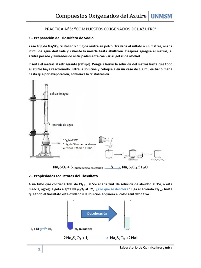 PRACTICA N5: COMPUESTOS OXIGENADOS DEL AZUFRE