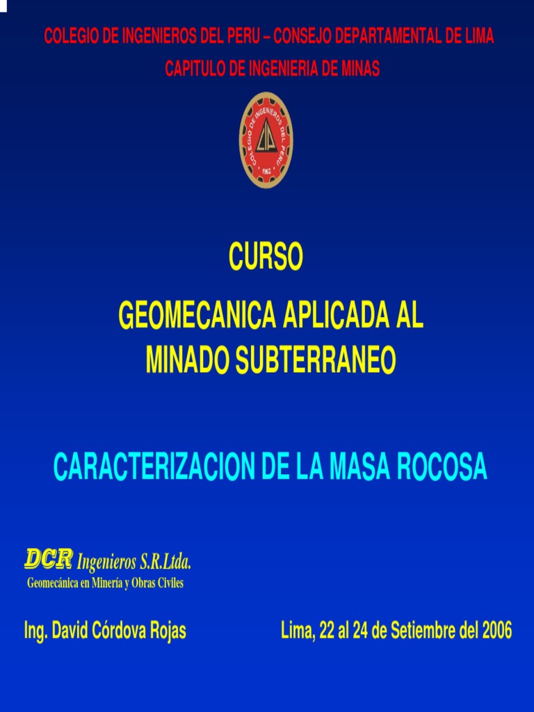 CURSO GEOMECANICA APLICADA AL MINADO SUBTERRANEO CARACTERIZACION DE LA MASA ROCOSA